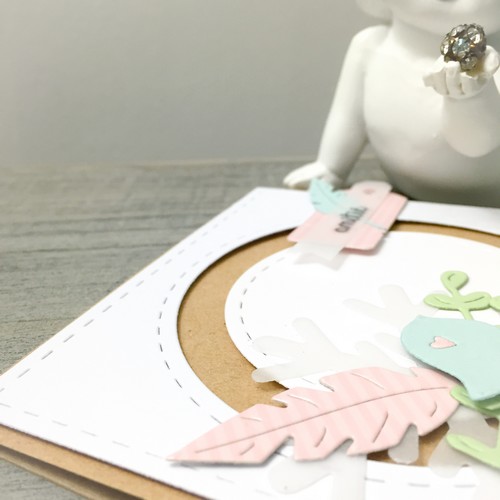 les dies "mes amours", "mon coeur", "plumes", "zoziaux" et "feuillages #2", ainsi que les tampons issus de la planche "joyeuse St Valentin".